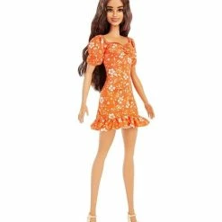 BARBIE FASHIONISTA DOLL #182 ORANGE FLORAL PRINT DRESS