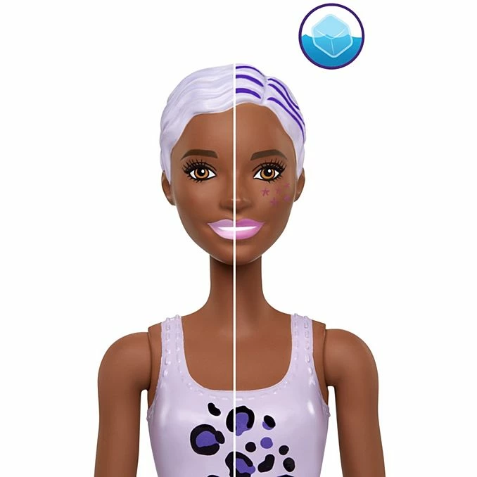 - ?For even more transformation, dip the sponge in ice cold water and use on the color-change pieces — 2 long-haired wigs, 2 pets, 2 accessories and Barbie® doll’s hair and face — for a new look.