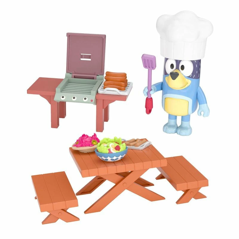 Dad’s Backyard BBQ Playset allows you to bring the fun and imaginative play of Bluey and her family into your home!