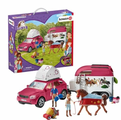 Content:Â 1x SUV, 1x horse trailer, 1x tent, 1x girl, 1x man, 1x Holsteiner mare, 1x saddle, 1x bridle with reins, 2x straw bales, 1x hay net, 1x ladder for connecting, 1x head collar, 1x helmet, 1x bucket, 1x grooming box, 1x massage brush, 1x curry comb