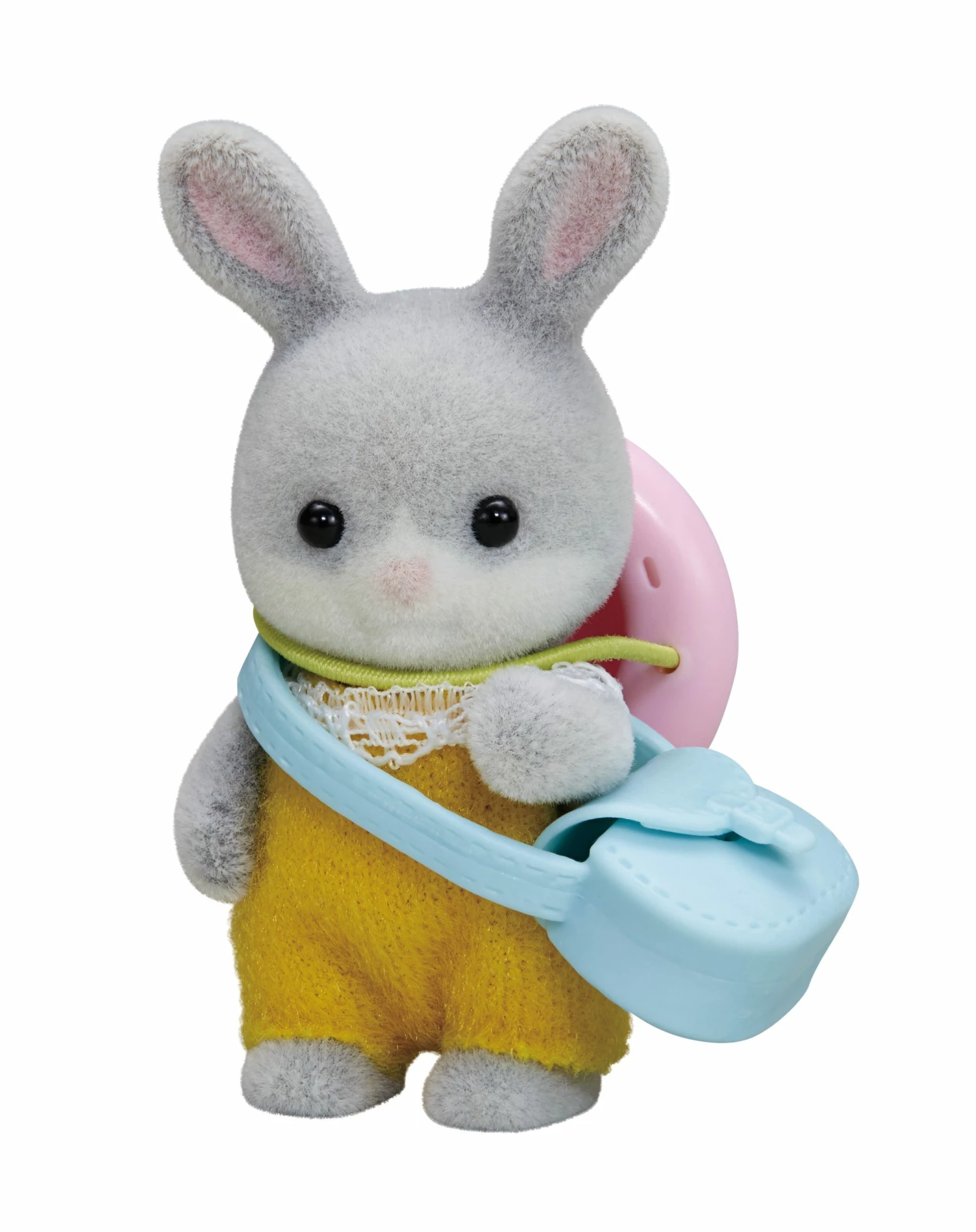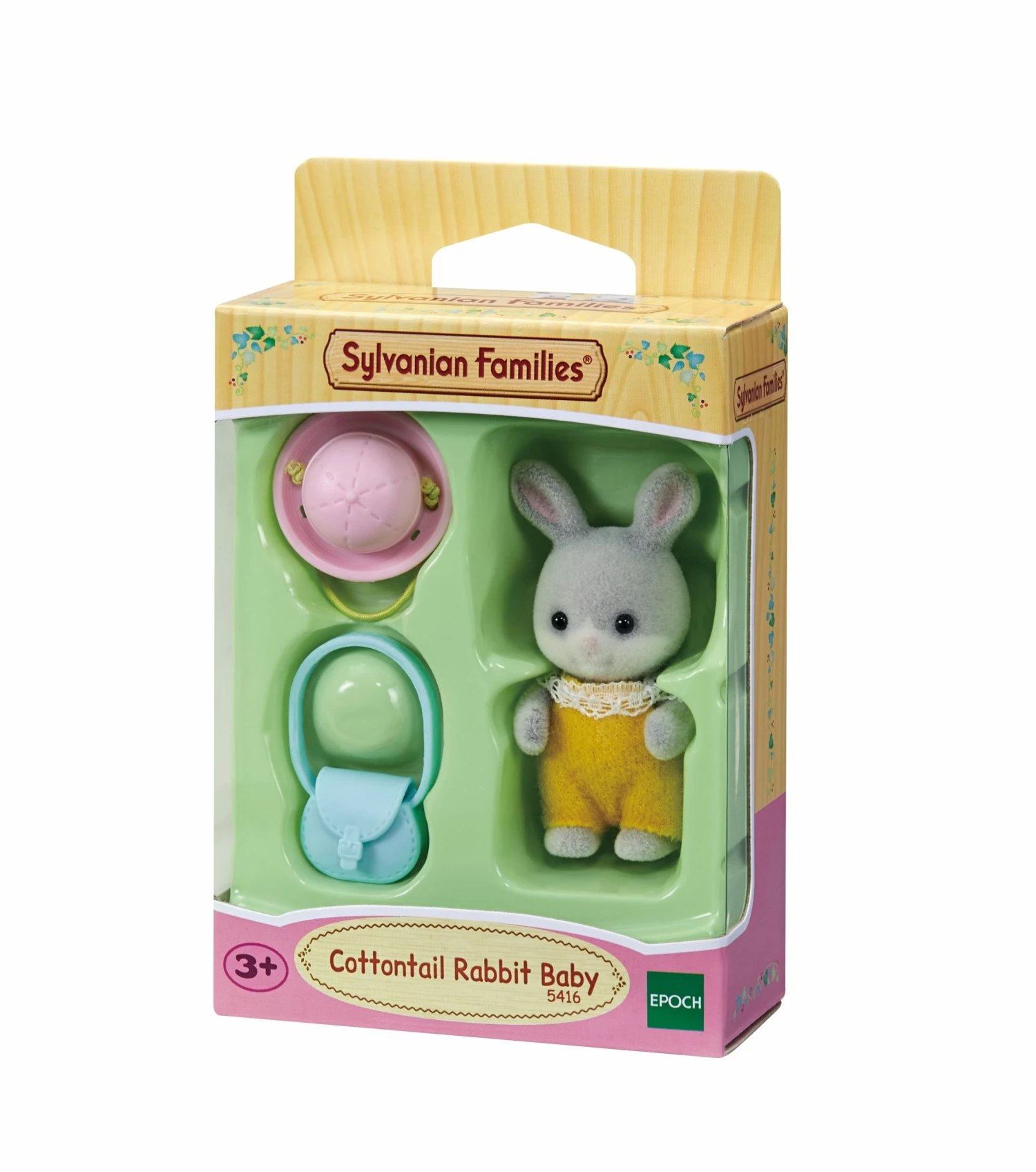 Charlie Cottontail comes with baby crib and bottle. Great for play on its own or together with the Cottontail Rabbit family (sold seperately).