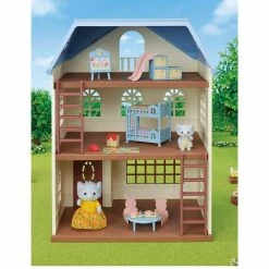The Sky Blue Terrace is a town house with three wonderful floors, lots of pretty windows and plenty of space for lots of furniture. The top floor has a large round window and a small balcony to look out of. The other two floors have plenty of room for furniture and families.