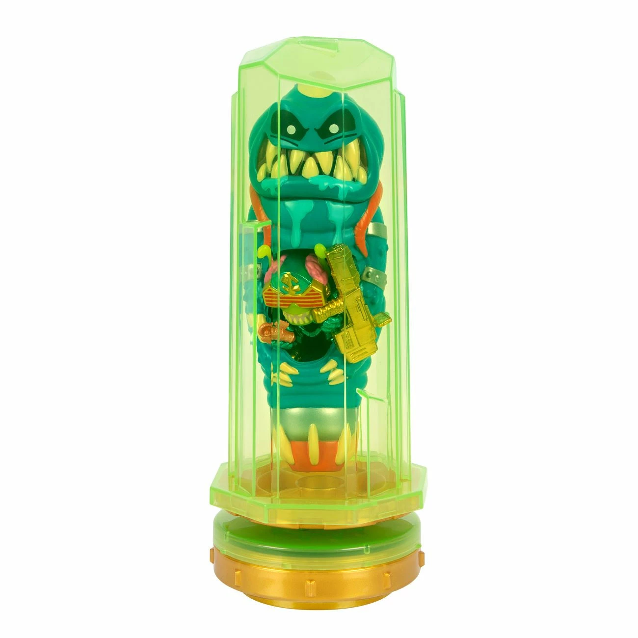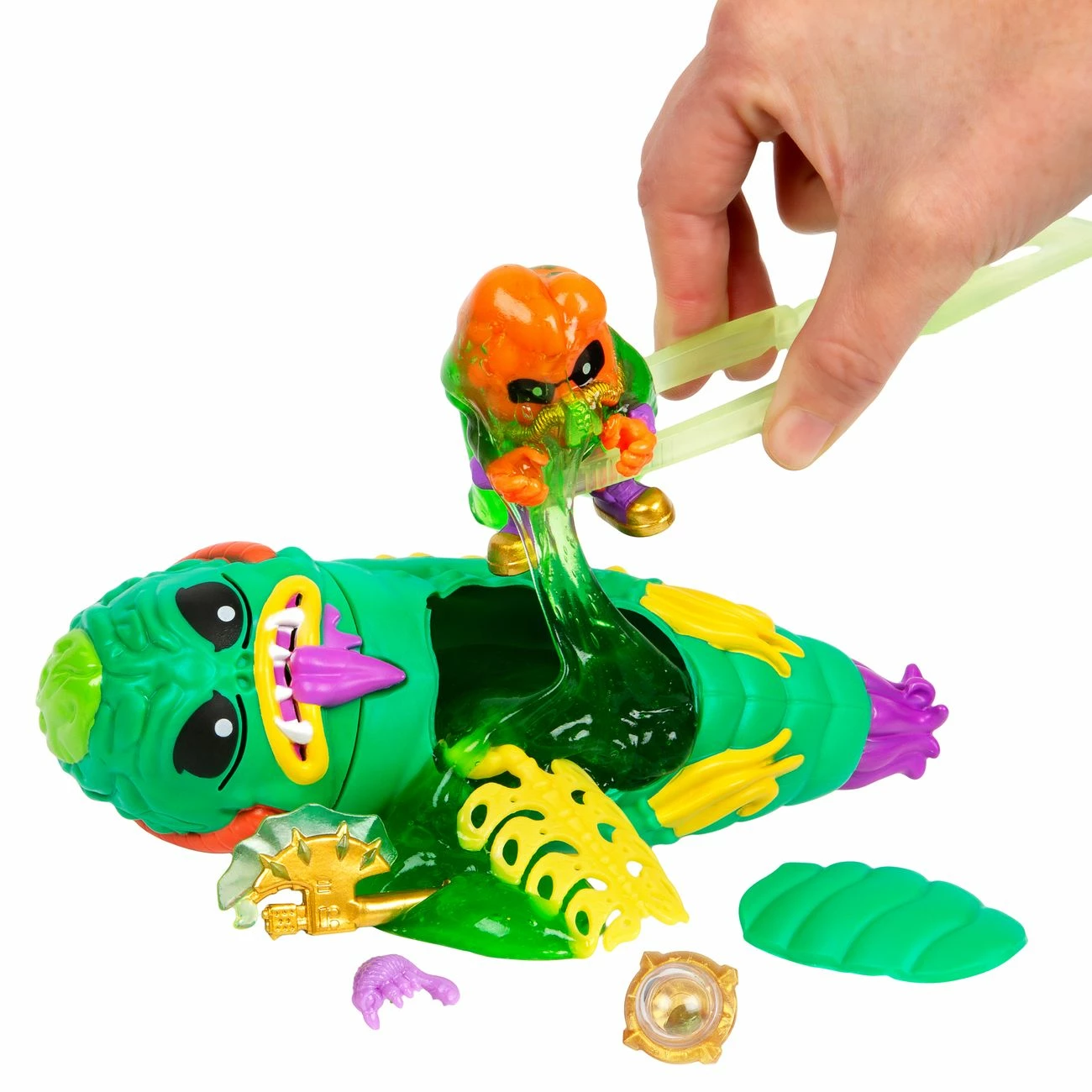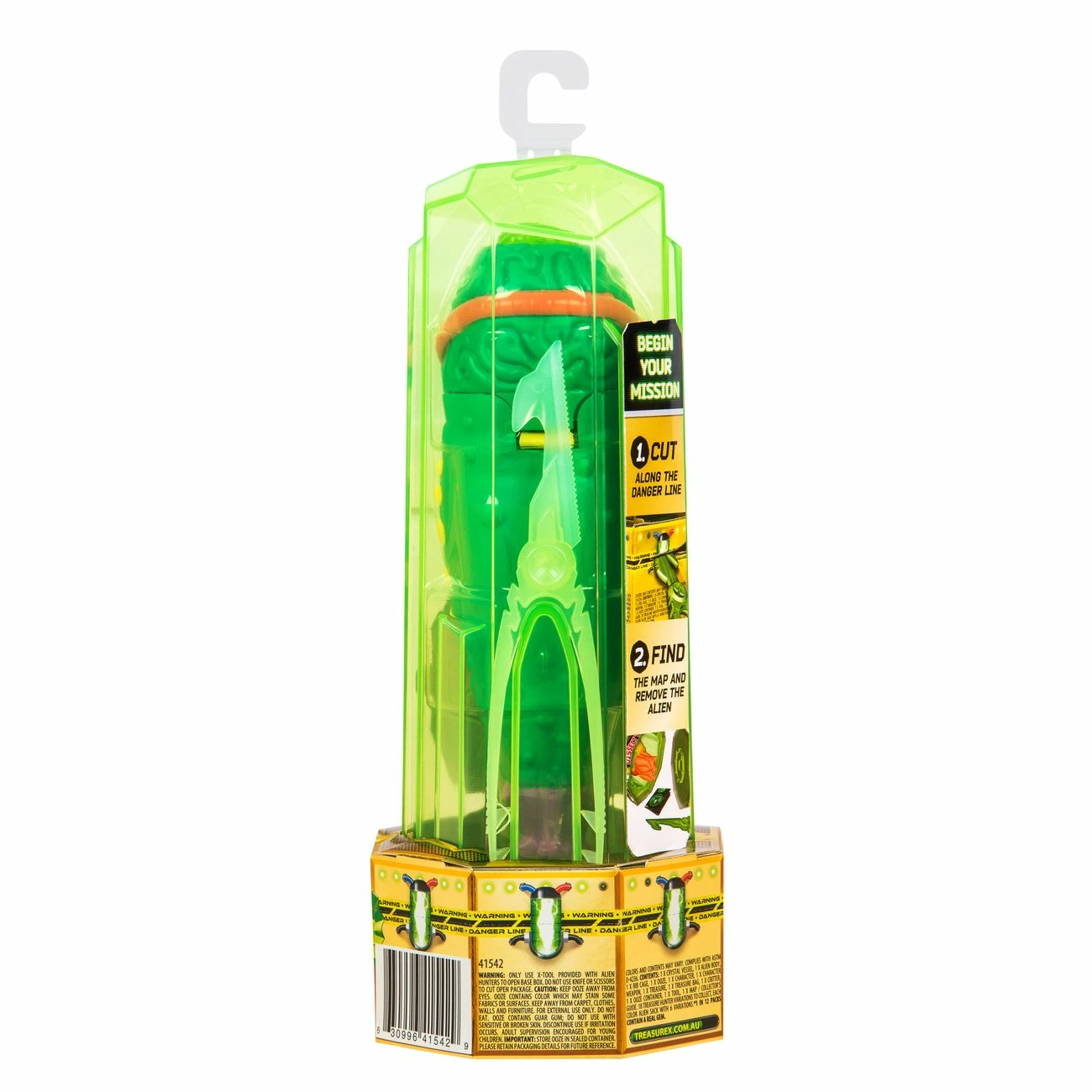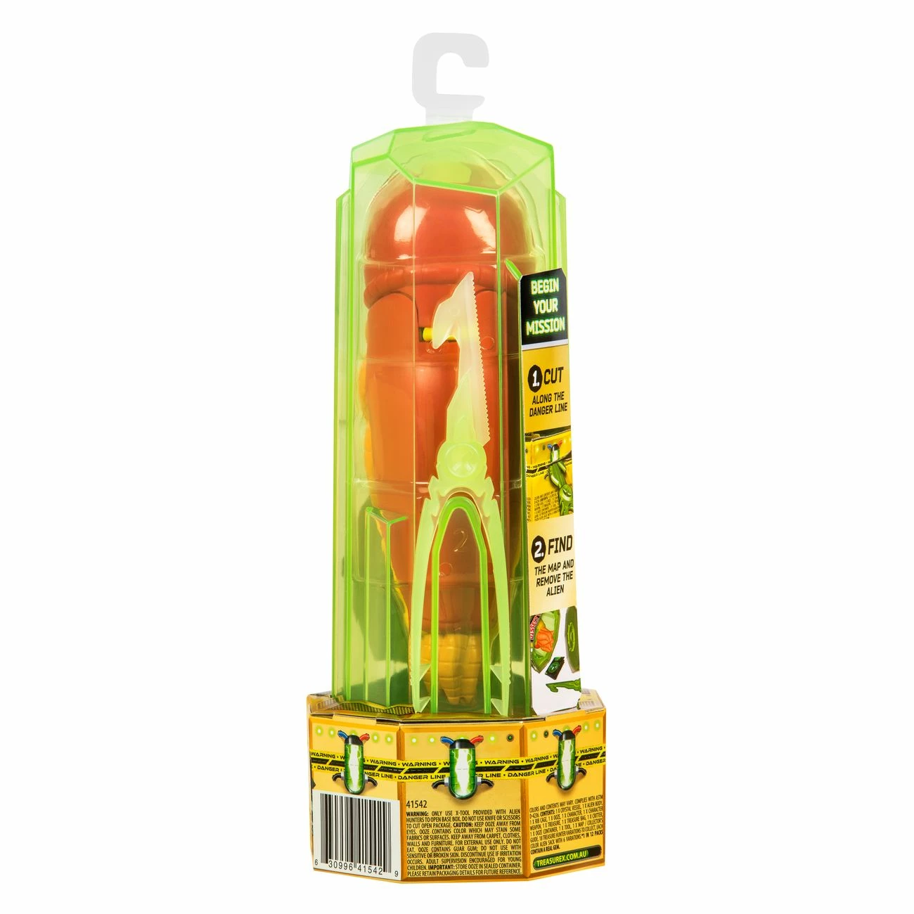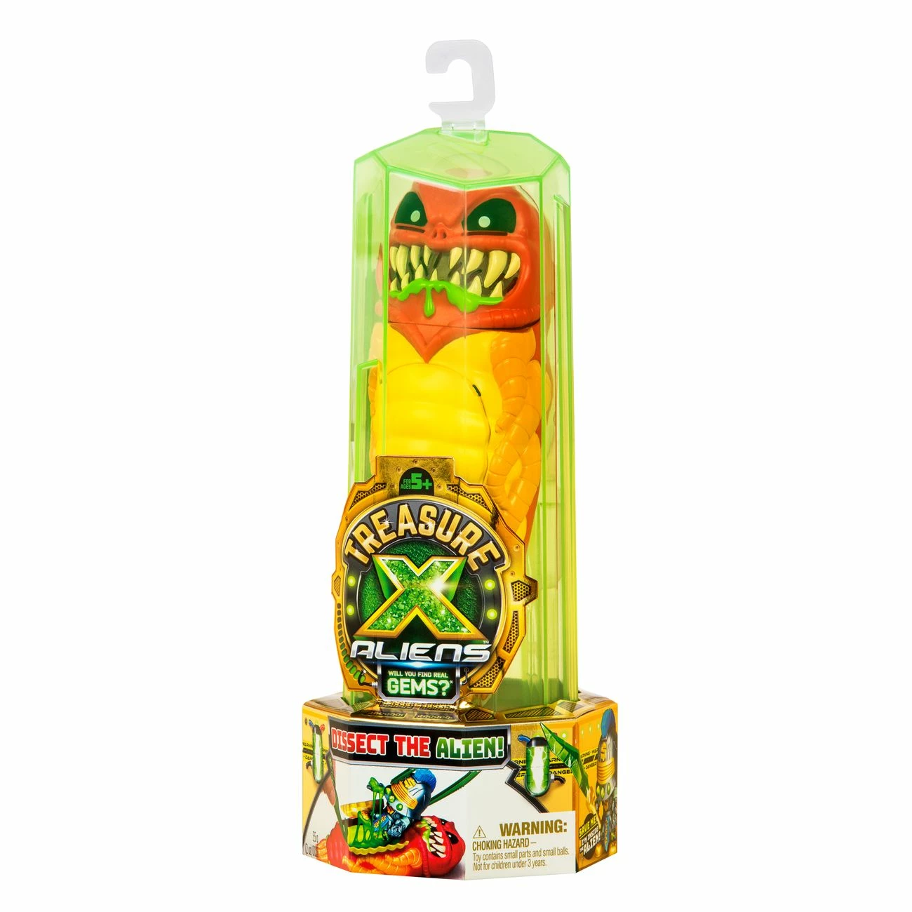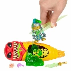 Cut through the packaging using the included tool to release the alien from his Crystal Vessel, then slowly dissect the alien belly to save the Treasure Hunter! Don’t forget to look out for the rib cage, gut critter and the green ooze within!